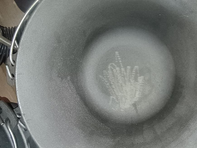 Kotlíky sú fľakaté a poškriabané.