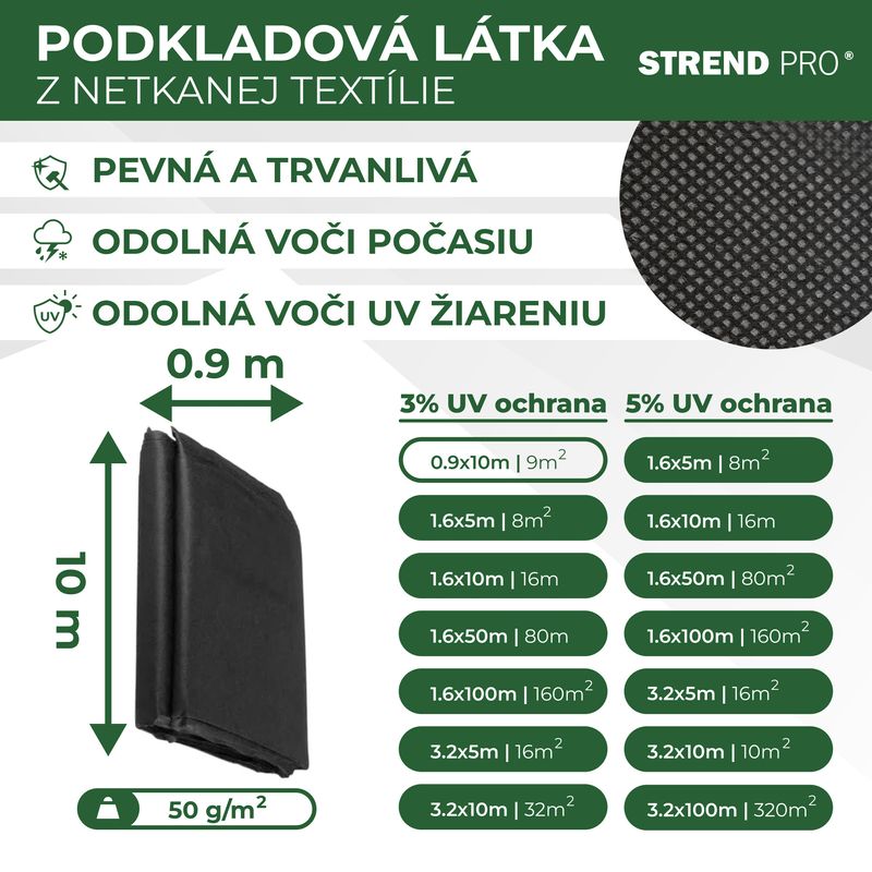 Használata: megakadályozza a gyomok növekedését, támogatja a virágok és zöldségek növekedését - Szín: fekete - Méretek: 0,9 x 10 m - Suruség: 50 g/m2