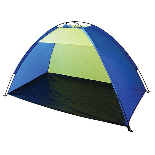 A kékeszöld strandsátor felnőttek és gyerekek számára is alkalmas. A sátor nyitott elejű, nem zárható le. Gyerekeit így szemmel tarthatja miközben játszanak. A strandsátor poliészterből készült, mely ellenáll a víznek és az UV sugaraknak. Az üveglaminátnak köszönhetően a sátor megtartja alakját. Méretei 2 x 1,2 x 1 m.