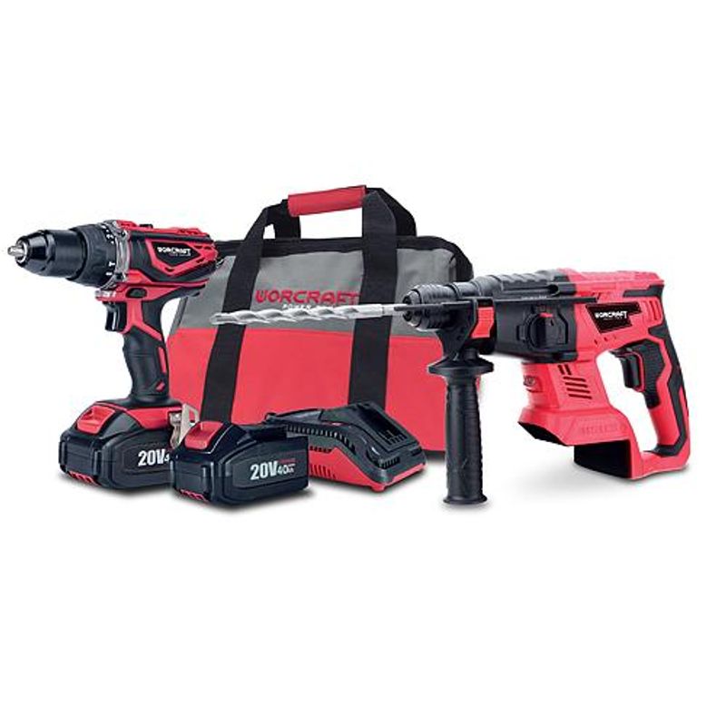 A praktikus Worcraft készlet minden barkács és profi mester kiváló segítoje. Ez a költséghatékony készlet szénmentes kalapácsból, csavarhúzóból, töltobol, 2 akkumulátorból és egy táskából áll. Worcraft CLB-20 V-4,0 akkumulátor A Worcraft CLB-20 V-4,0 tartalék akkumulátor 20 V feszültséggel rendelkezik. Nagy kapacitása (4000 mAh) hosszú élettartamot eredményez. Az akkumulátor Li-ion típusú, ami garantálja az akkumulátor hosszú élettartamát. Worcraft CLC-20 V-2,4 tölto A Worcraft CLC-20 V-2,4 töltot 4 vagy több cellás akkumulátor töltésére tervezték, legalább 4 Ah kapacitással. Worcraft CHD-S20Li csavarhúzó A Worcraft CHD-S20Li csavarhúzót 13 mm-es befogó átmérovel fa, fém, kerámia, muanyag és beton fúrására tervezték. Csavarozáshoz és menetkészítéshez is alkalmas. A csavarhúzó maximális sebessége 1650 ford./perc. A csavarhúzó, amelynek maximális löketszáma 26 400/perc, a maximális nyomatékot 50 Nm biztosítja. A csavarhúzó LED-es világítással, fém tokkal és ergonómikus, csúszásmentes fogantyúval is rendelkezik. Worcraft CRH-S20LiB szénmentes kalapács A Worcraft CRH-S20LiB kalapácsfúrót kalapács fúrására betonba, téglába, kobe, fába, muanyagba, fém vágására, valamint csavarozására (speciális kiegészítokkel) tervezték. A kalapácsfúró eros, szénmentes motorral rendelkezik. A fa fúrásának maximális átméroje 25 mm, acélban 13 mm és betonban 20 mm. 1000 ford./perc sebességgel muködik, és a löket száma eléri a max. 4450 bpm értéket. Worcraft textil táska A Worcraft textil szerszámtáska kiváló kiegészíto. Hatékonyan eleget tesz a szerszámszállítási és tárolási igényeknek. A táska ellenálló 600D nylonból készült, maximális teherbírása 15 kg. A táska mérete 34 x 45 cm.