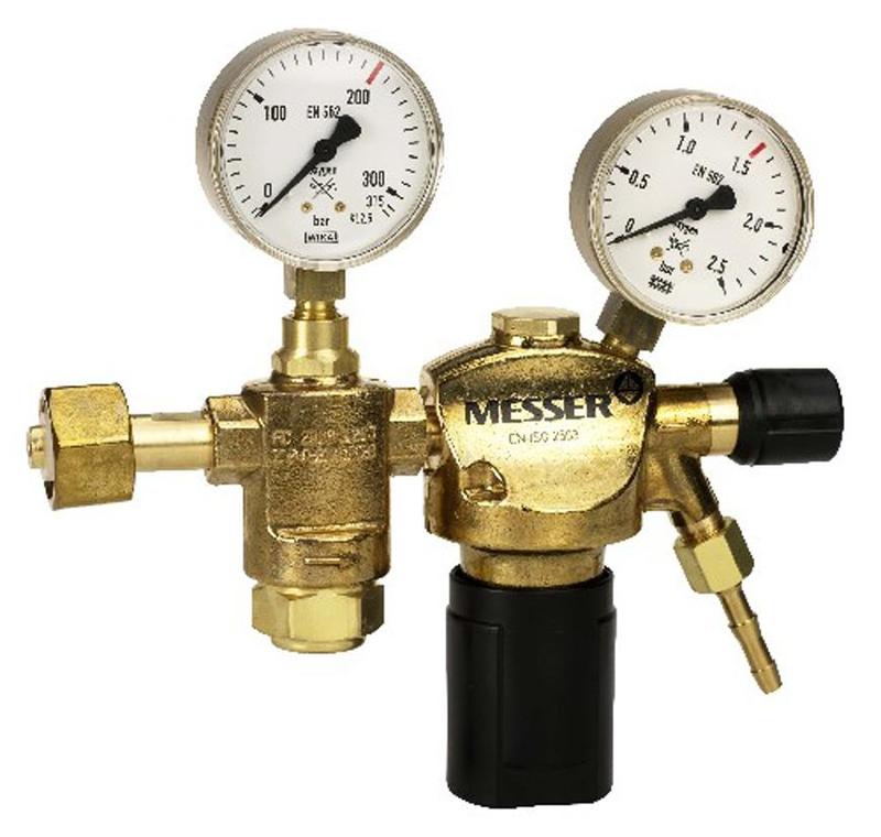 Two-stage oxygen reduction valve. Maximum inlet pressure 200 bar. Series Messer Constant 2000.