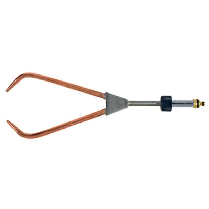 MINITHERM Z-HA forks for Acetylene and Hydrogen. The specially designed injector enables precise gas mixing by means of efficient suction vacuum. Welding, soldering and heating with two central flame outlets . Very fine, powerful and precisely adjustable flame output. Length approx. 210 mm. Weight approx. 90 g. Nozzle spacing: approx. 30-60 mm.