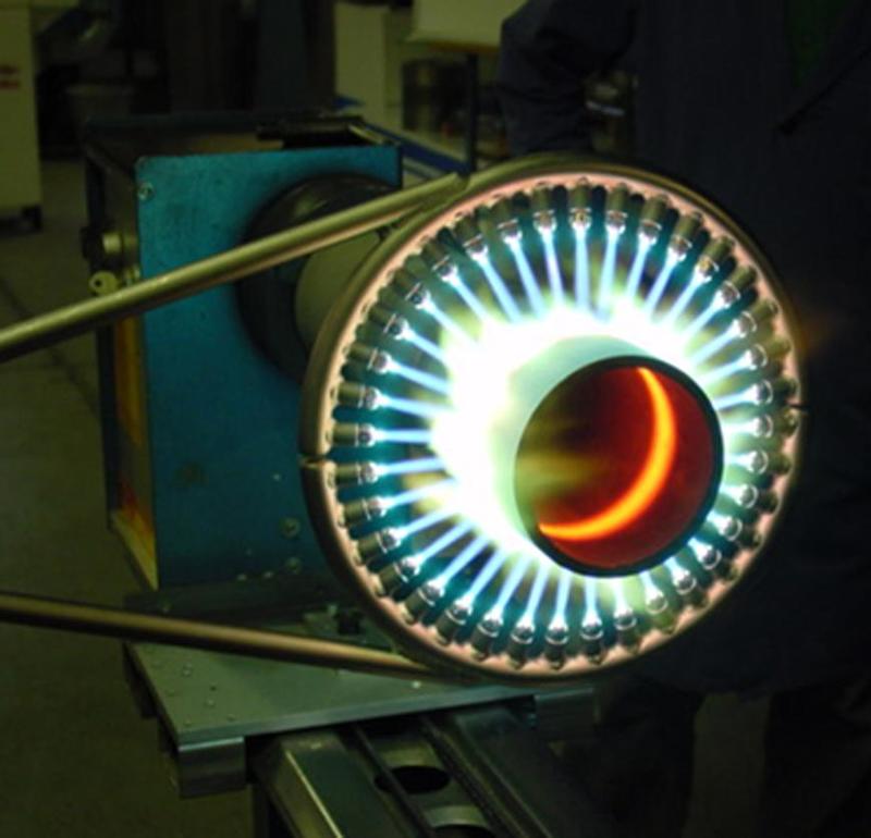 Circular burner from seamlessly drawn, chemically nickel-plated steel tube, with replaceable FK-A type 0, 1, 2, or 3 nozzles from copper and flame exit (F). Double mixer feed and additional distribution tube. Mixing tube made of heat-resistant, stainless steel. Excellent for technical heating.