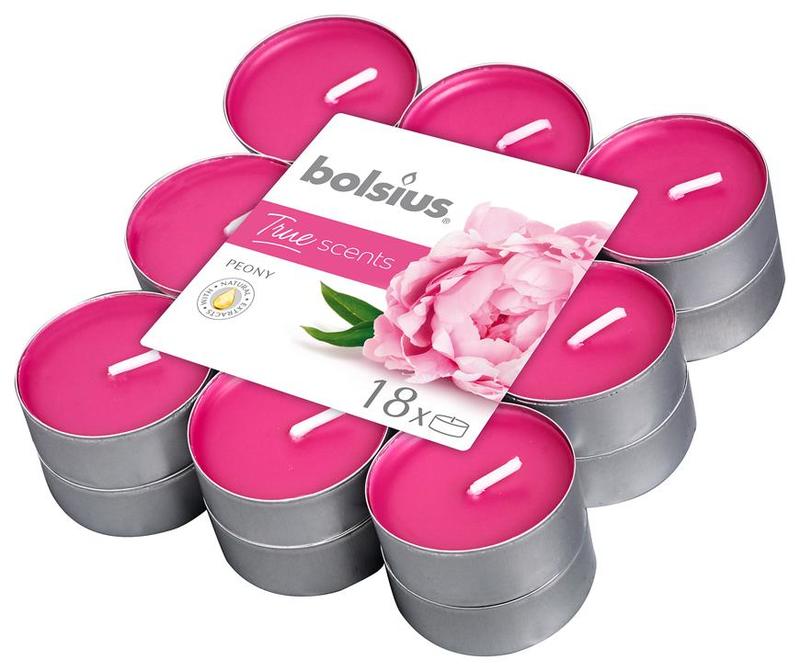 Gyertya bolsius Tealight True Scents, pünkösdi rózsa, csomag. 18 db
