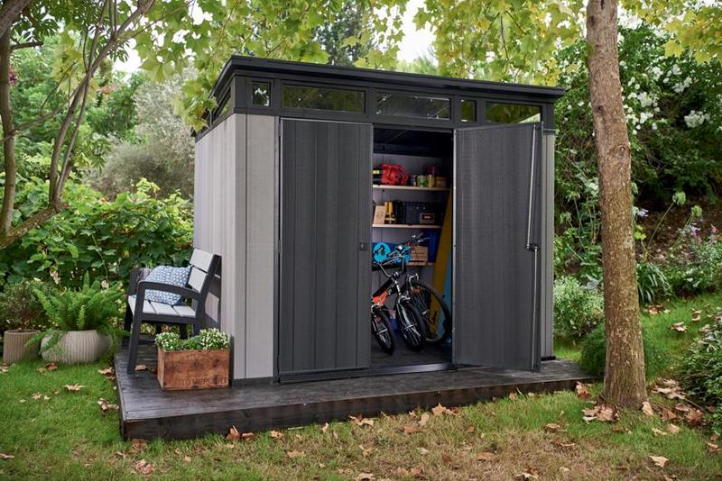 - a ház nemcsak szerszámok és kerti kiegészítők, hanem fűnyíró vagy grill számára is kiválóan alkalmas.