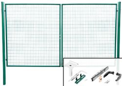 Kétszárnyú kerti kapu hegesztett hálós béléssel, 50 x 100 mm-es szembőséggel és 3,5 mm vastagságú huzallal. Az oszlop átmérője 76 mm. A kivitel cink + PVC. Színe zöld.