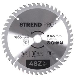 Tárcsa Strend Pro TCT, 165x2.2x20/16 mm, 24T, fához, fűrész, SK lapkák