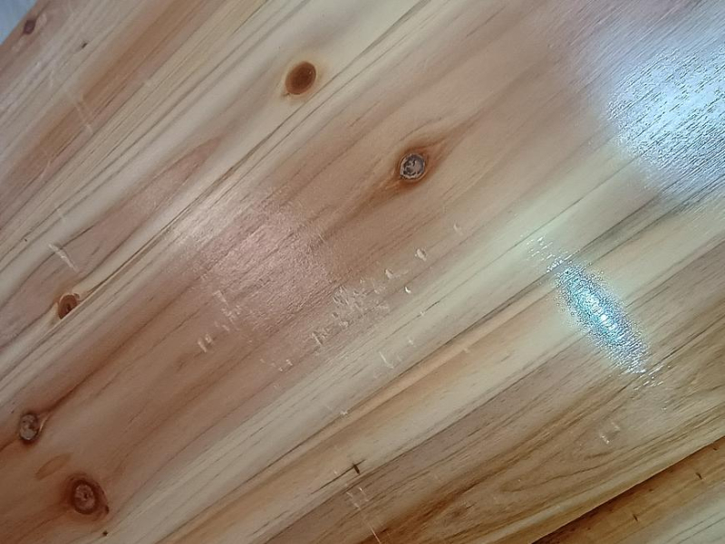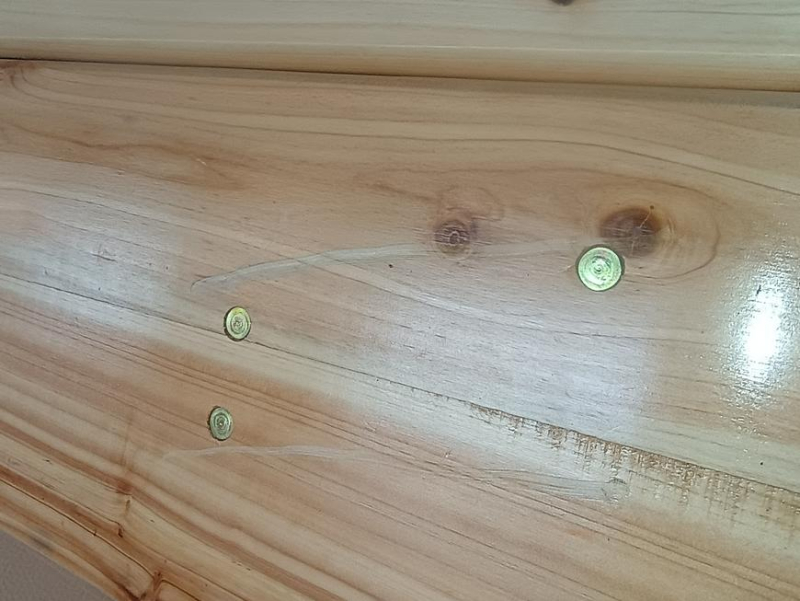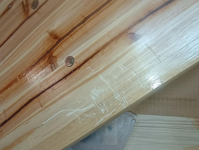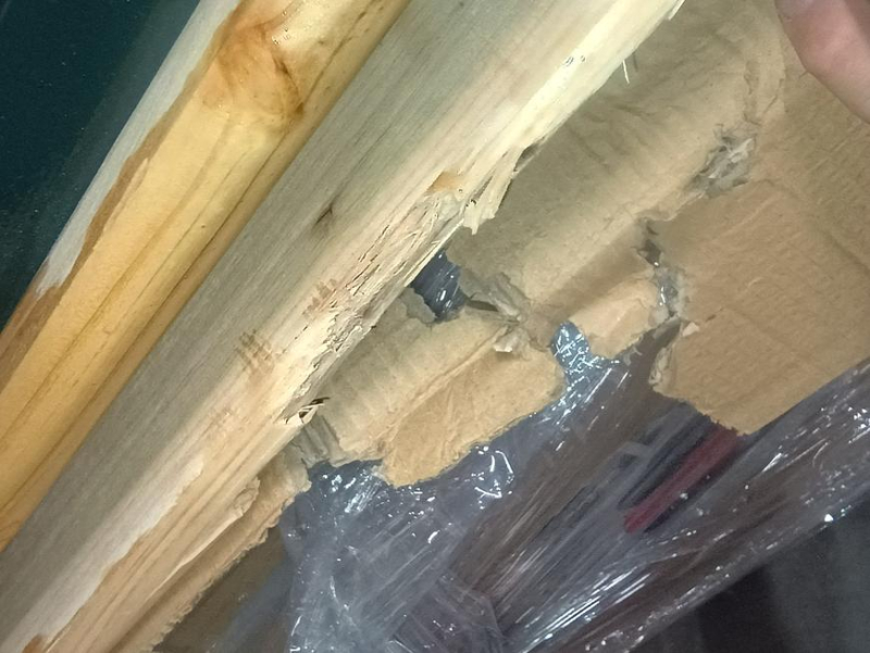 POPIS ZÁVADY: Poškodený obal, rôzne škrabance, preliačiny, pozatekaný lak na stoloch a laviciach.