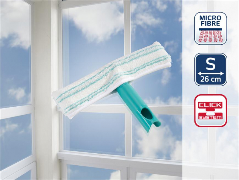 Ablakmop ablakok, keretek és sarkok tisztítására, nagyfokú víz- és szennyeződésfelvétel, a teljes mop felületre helyezett mikroszálas csere, törlőkendő szélessége 26 cm, kompatibilis a CLICK sorozat termékeivel.