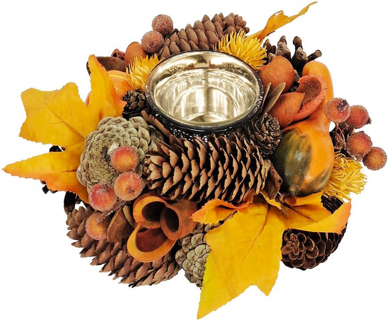 MagicHome Nature ikebana, őszi, narancssárga, levelekkel, gyertyára