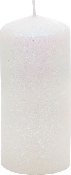 Gyertya MagicHome Karácsonyi, 5,5x12 cm, henger alakú, ezüst, csillámos
