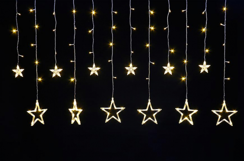 Lánc MagicHome Karácsony Curtain, 138 LED meleg fehér, csillagokkal 230 V, 50 Hz, 8 funkció, megvilá
