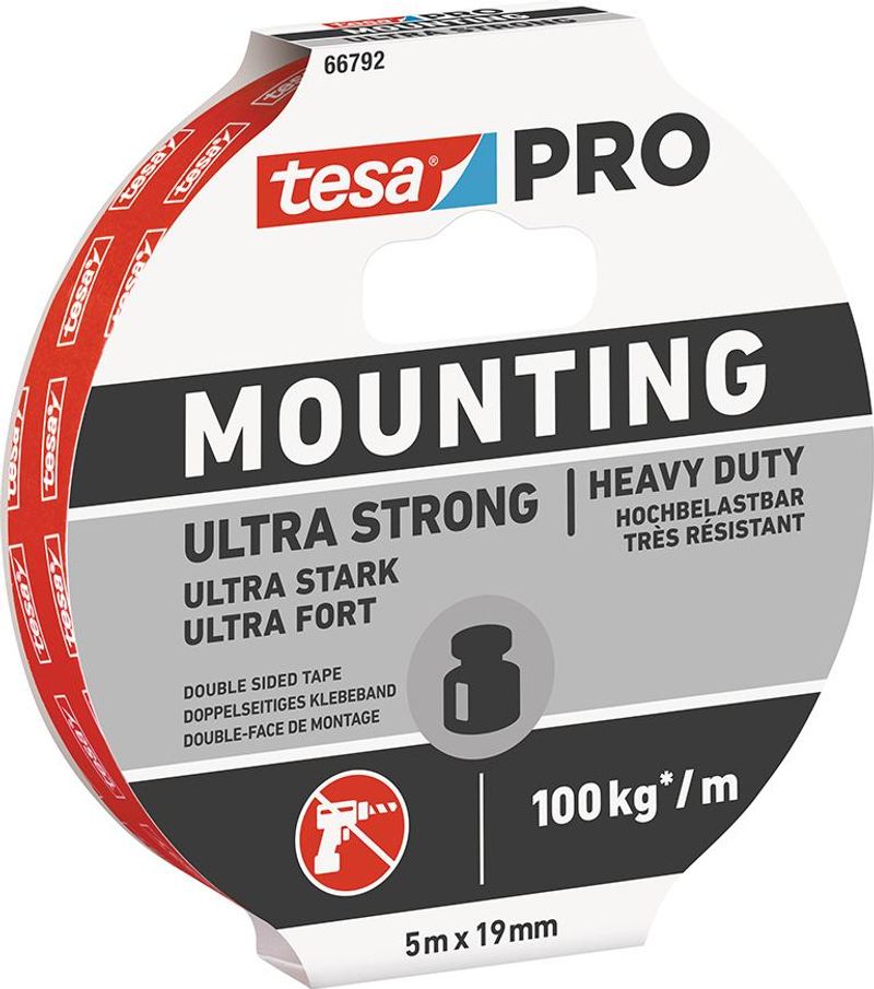 Szalag tesa® Mounting PRO Ultra Strong, szerelő, kétoldalas, ragasztó, 19 mm, Hossz: 5 m