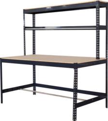 A Racks műhely munkapad a mechanikai sérüléseknek ellenálló anyagokból készült. Praktikus polcot tartalmaz, amelyre szerszámait és alkatrészeit pakolhatja. A munkapult maximális terhelhetősége egyenletesen elosztva 350 kg. Könnyű összeszerelés. Méretek : 183x90x183 cm.