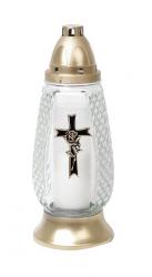 Klasszikus, megfizethető árú sírjel, tiszta vagy kék üvegből készült rózsával és elegáns kupakkal, amely kiegészíti szerettei sírját. Gyászkoszorúk és ikebanok díszítésére is alkalmas. A színválasztás nem befolyásolható. Égési idő: 28 óra. Raklapmennyiség: 576 db. A csomag 9 db-ot tartalmaz.