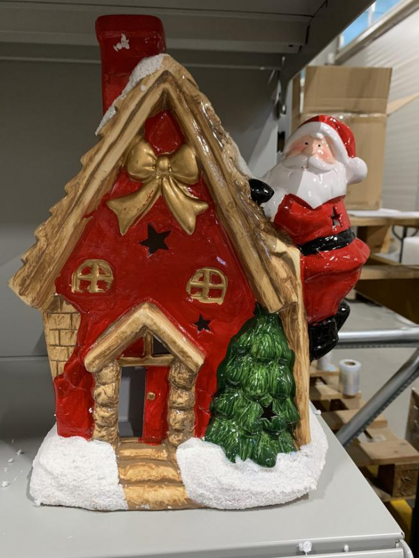 2.TRIEDA Dekorácia MagicHome Vianoce, Domček so santom na streche, LED, terakota, 2xAAA, 27x13x34 cm