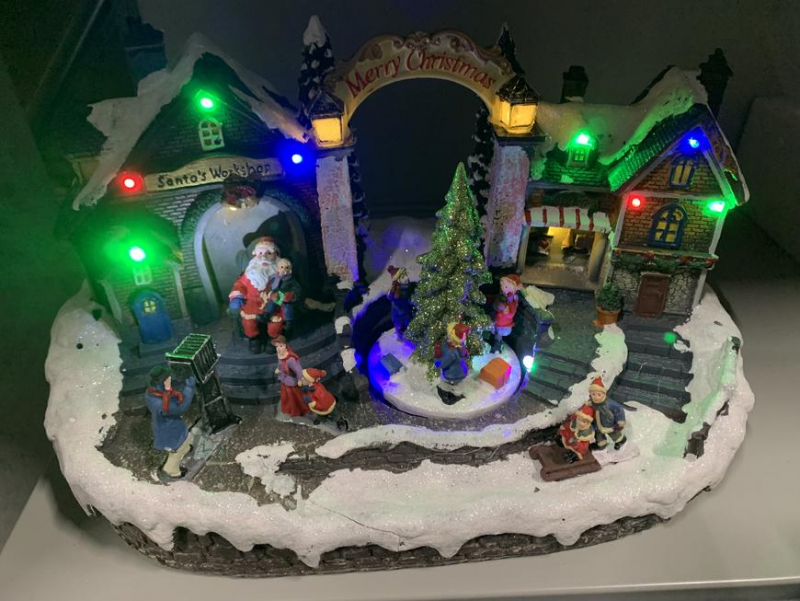 2.TRIEDA Dekorácia MagicHome Vianoce, Dedinka, 15 LED, farebná s melódiami, 3x AA, interiér, 33,50x18x20 cm