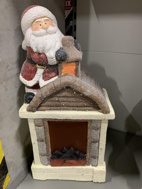 2.TRIEDA Dekorácia MagicHome Vianoce, Santa s kozubom, 9 LED, 3xAA, keramika, 27,50x19x51 cm