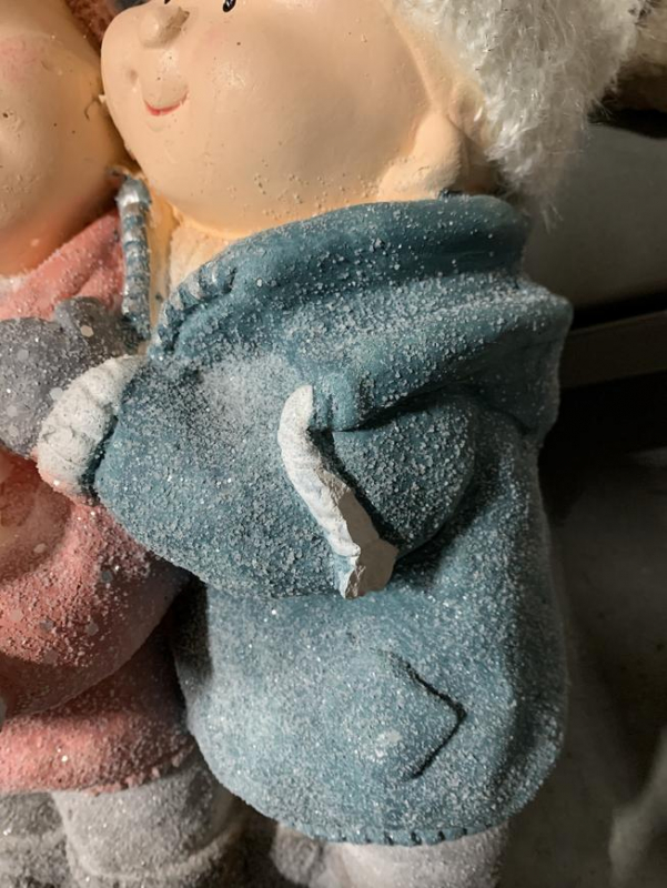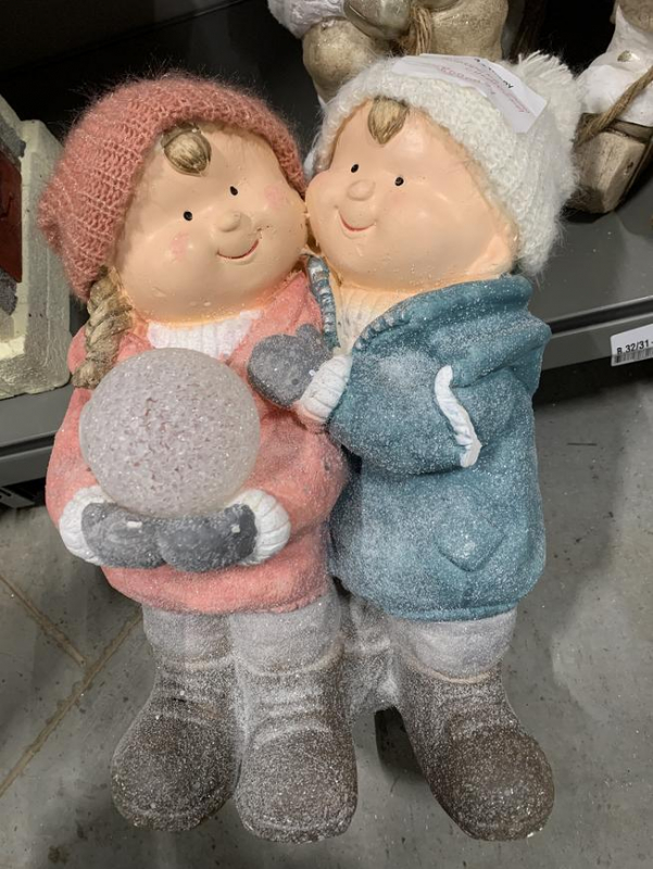 2.TRIEDA Postavička MagicHome Vianoce, Chlapček a dievčatko so snehovou guľou, 1 LED, keramika, 27,5x23x40 cm