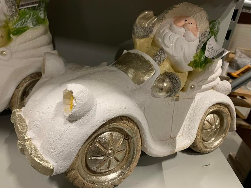2.TRIEDA Dekorácia MagicHome Vianoce, Santa v aute, retro, keramika, 46,50x19,50x31,50 cm