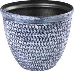 A fémes hatású virágtartó egész évben használható kül- és beltéri használatra, erkélyre, teraszra vagy kertbe. Kiváló minőségű, könnyen mosható anyagból készült, fagy- és időjárásálló. Méretek: 30x19 cm. Szín: szürkéskék.