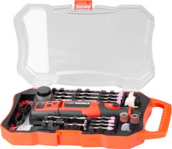 A Strend Pro egyenes csiszológép fémek, műanyagok, fa és hasonló anyagok részletes megmunkálására szolgál megfelelő megmunkáló tartozékkal. A készlet 210 darabos tartozékot tartalmaz: