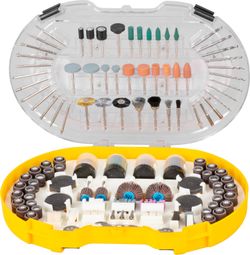 A Strend Pro csiszolókorong-készlet alkalmas mini csiszológépekhez vágáshoz, fúráshoz, csiszoláshoz, polírozáshoz, tisztításhoz, gravírozáshoz és maráshoz. A készlet a következőket tartalmazza: 3x 1,6 mm, 2,4 mm és 3,2 mm tokmány, 26x10 mm-es csiszolókő és 1x 3/8" csőkulcs.Gravírozáshoz:12x gyémántvágó.Fúráshoz:9x HSS fúrószár.Tisztításhoz:3x nylonkefe, 3x acélkefe és 1x sárgarézkefe.Csiszoláshoz:2x gumi csiszolókorong, 6x gumi csiszolótest, 10x csiszolótest, 4x lamellás csiszolókorong, 52x csiszolóhenger, 80x csiszolópapír, 18x csiszolókorong.Vágáshoz:2x gyémánt vágókorong, 36x korund vágókorong, 2x szár, 16x vágókorong.Polírozáshoz nem:1x polírozópaszta, 1x szár, 9x filckorong. Összesen legfeljebb 276 csiszolókést tartalmaz.