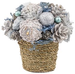 Ikebana MagicHome Karácsony, havas fenyőágakkal, fa utánzat, 18 cm