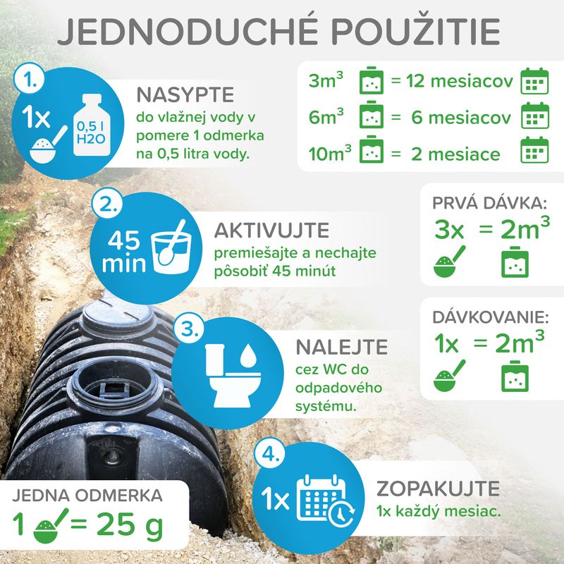 A bioenzimatikus tisztítószer Mr. Bacteria No.1 rendkívül hatékony készítmény a szennyvíztárolók és zárt szennyvízgyűjtők tisztán tartására. 0,5 kg-os kiszerelésben 400 milliárd baktériumot tartalmaz, amelyek segítik az organikus hulladék lebontását és megszüntetik a kellemetlen szagokat.