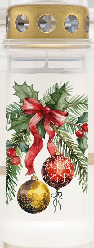 A Bolsius Gravelight NR6 karácsonyi szalagdíszítéssel ideális kiegészítő a békés és ünnepi hangulat megteremtéséhez a téli szezonban. Elegáns, szezonális motívummal ellátott kialakításának köszönhetően alkalmas a temetőbe és kültéri dekorációnak is.