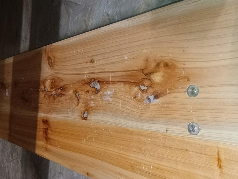 POPIS ZÁVADY: Rôzne poškodenia, škrabance, praskliny oškretý lak na doskách stola a lavíc