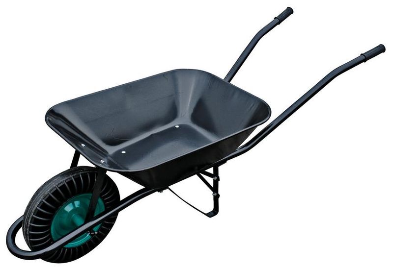 Cargo85 - Bantam, Fe, 85 literes felépítmény. A kemény bantam kerékkel ellátott építési talicska sokoldalúan használható a kertben vagy az építkezésen. A hajótest formázott, lakkozott kivitelben. Maximális teherbírás: 100 kg.