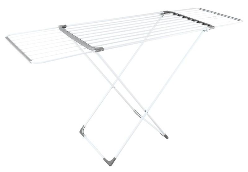 A MagicHome állítható ruhaszárító nem hiányozhat otthonából. Bel- és kültérbe egyaránt alkalmas. Nagy területet kínál a ruha és a fehérnemu szárítására. A szárító nagyon stabil, oldalra hajtva könnyen széthúzható és bovítheto. A szárító a rozsdamentes acélfestéknek köszönhetoen nem rozsdásodik. Méretei 107-177 x 55 x 96 cm.
