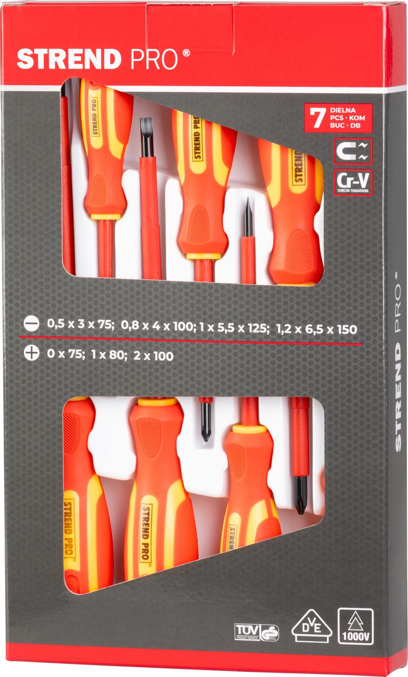Csavarhúzó készlet Strend Pro YF20719, VDE 7 részes, lapos + Phillips, villanyszerelő, 1000V